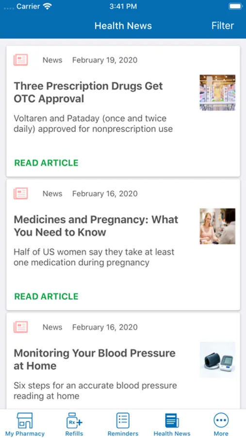 * Access a history of your medications and Rx numbers