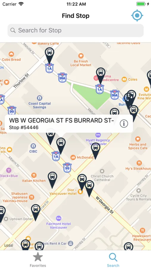 - Save favorite stops for quick access