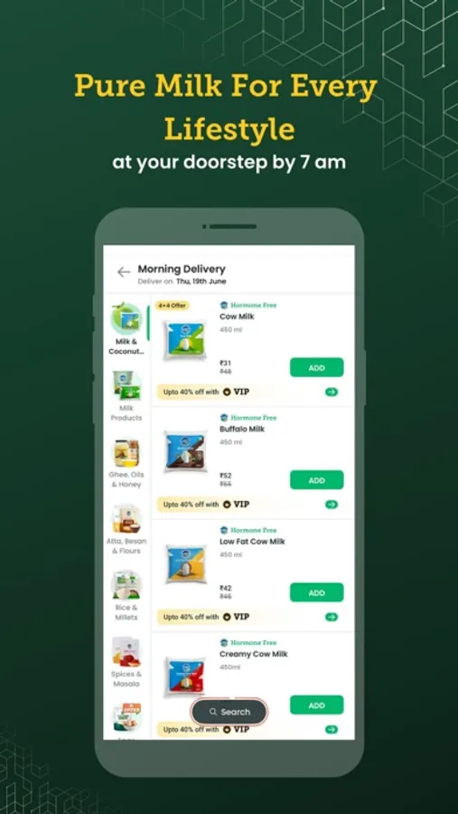 We engage directly with dairy farmers within 100kms radius of your city to procure fresh Cow and Buffalo milk twice every day. We don’t recombine or overprocess our milk or any other grocery items in our range. After checking its quality over 72 parameters, including synthetic hormones, antibiotics, and naturally occuring toxins, we pasteurise all Milk for safety, and we are delivering it to your homes within just 18-24 hours of collection. Our direct-from-farm and in-house delivery partners help us make your life easier.
