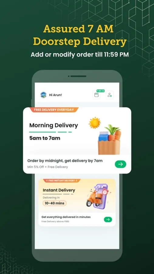 Delivering Grocery, Fruits & Vegetables, Milk every day morning at your doorstep by 7AM.