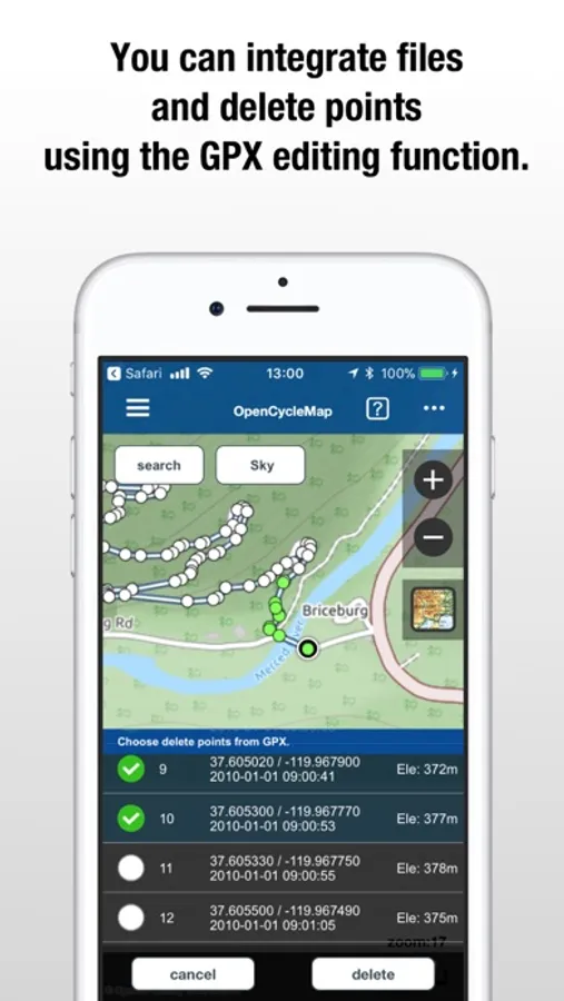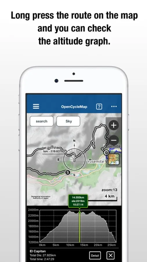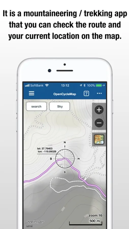 You can use the high performance Apple Map in urban areas where you can connect to the internet, and use the cached OpenStreetMap and OpenCycleMap as offline maps in mountainous areas where you cannot connect to the internet. In SkyWalking, when OpenStreetMap or OpenCycleMap is selected, the displayed map is permanently stored as a cache of tile data inside the application, and thereafter the cached data is used without depending on the Internet. Once the data is displayed at the required zoom level, it can be used as it is unless you explicitly delete the cached data, so it can be used as an offline map. For details on how to use, please refer to the SkyWalking official website or How to Use in the app. Cached areas can greatly reduce the risk of getting lost by displaying your current location, elevation, direction, planned route, destination, etc. on the map, even in environments without Internet access.