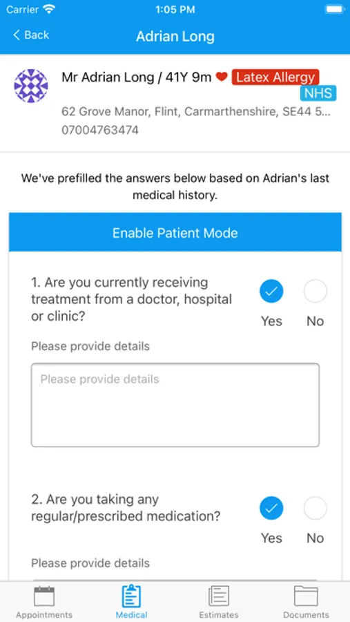 - Patients can create and sign their medical history form.