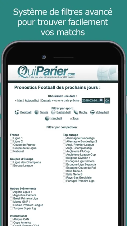 Pronostics football, rugby, tennis, basketball, volleyball, handball... L'application qui vous dit simplement sur QUI parier ! Simple et efficace