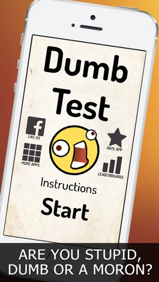 Are you stupid, dumb, an idiot or even a moron? Complete the Dumb Test! app to show to you and your friends that you are not completely dumb!