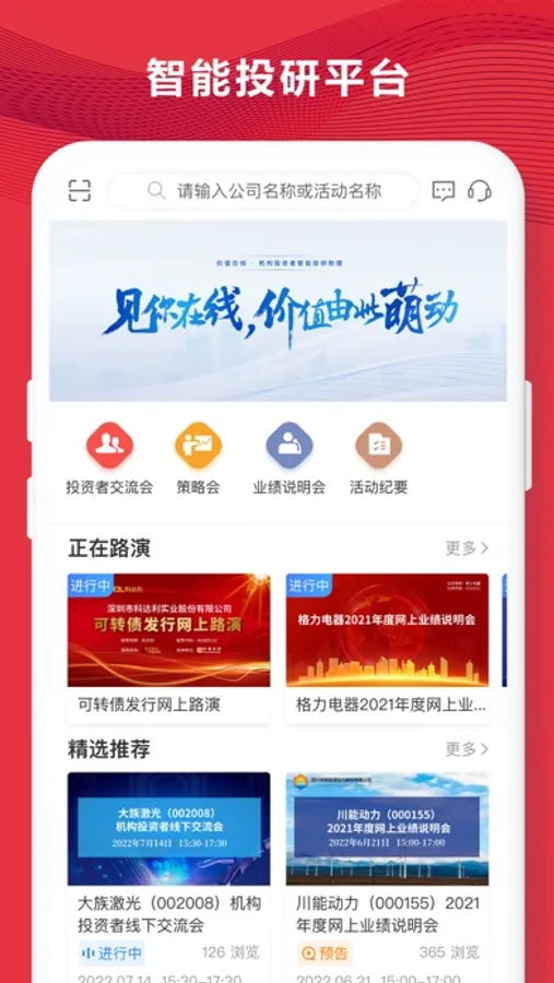 3. 智能投研平台,通过路演活动链接上市公司、投资者和分析师。
