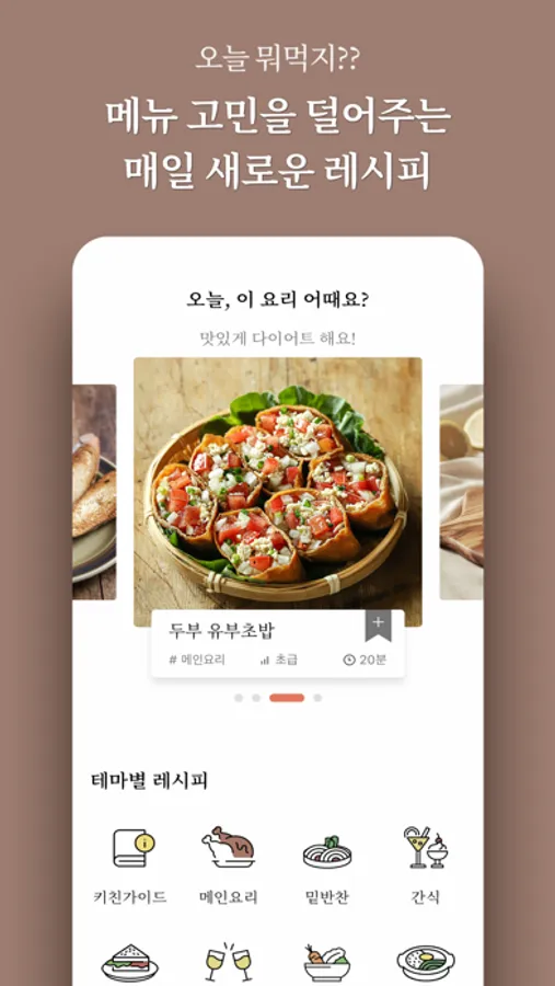 쉬운 요리부터 초대 요리 등 특색있는 레시피까지 한 번에 확인하세요.