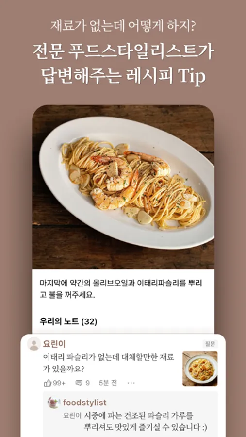 레시피노트에서 유저들의 꿀팁까지 확인할 수 있어요.
