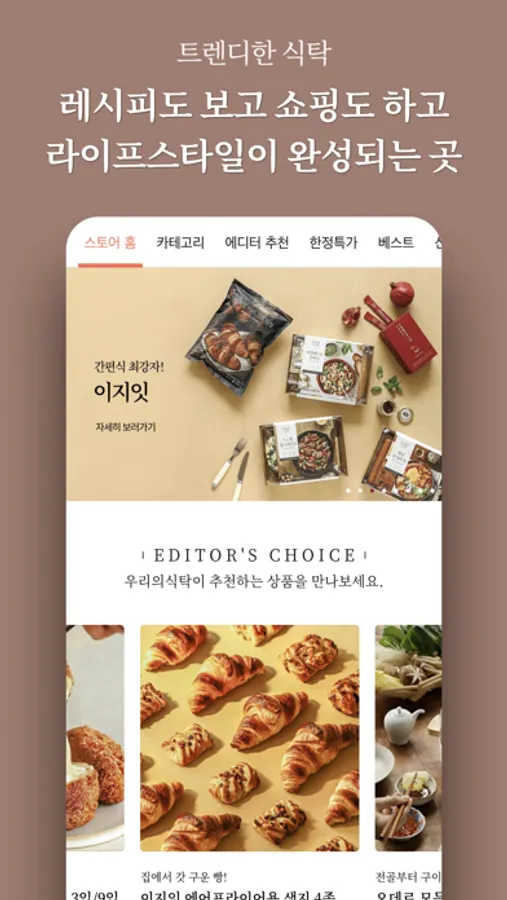밀키트, 식재료(푸드)는 물론 키친템, 그릇, 조리도구, 리빙, 가전 제품까지 모두 있어요!