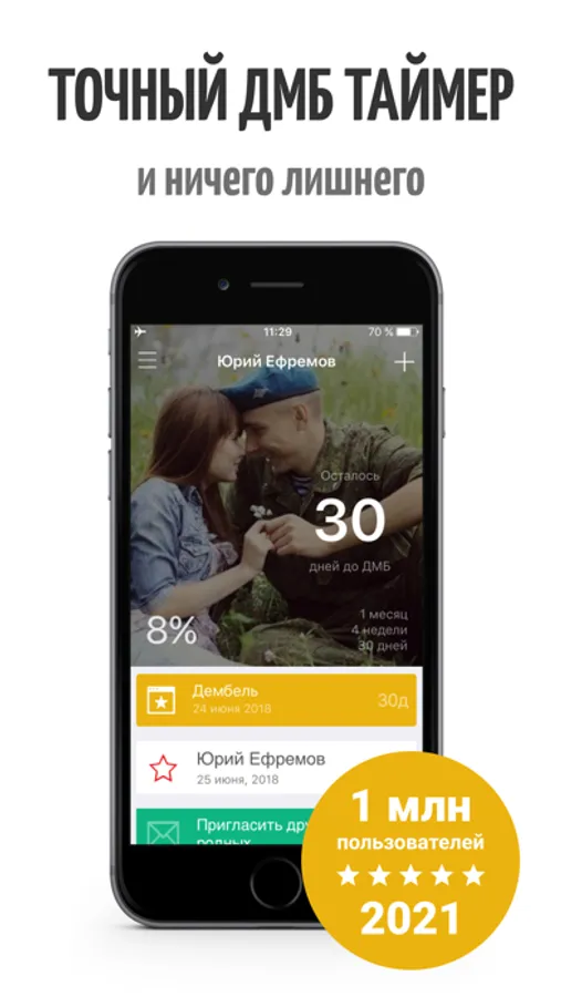 Программа будет полезна как самим военнослужащим, так и их родственникам, друзьям и девушкам. Просто введите дату дембеля, а все остальное наше приложение посчитает за вас!