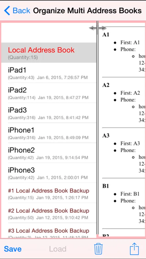 With this app, you could conveniently print/email/edit/manage your contacts, add/remove groups, add/remove group batch members, bulk messages/emails, and transfer between iOS devices in a way of peer-peer direct communication without any involvement of internet or cloud storage, your permission would be requested each time before transferring. In addition, you could conveniently organize multiple address books, for example, multiple address books transferred from other iOS devices could be stored/loaded/deleted in your iPhone or iPad. Your local address book could be saved in multiple versions, each version could be loaded/deleted individually. The following features are supported: