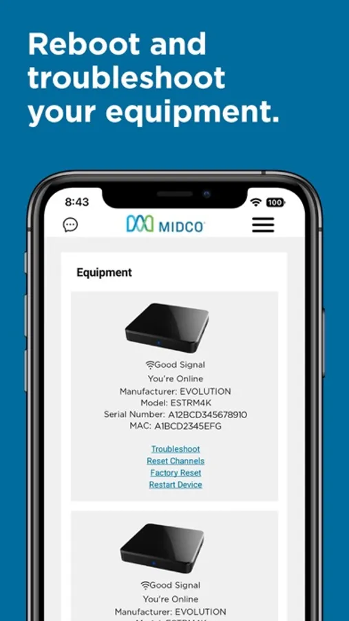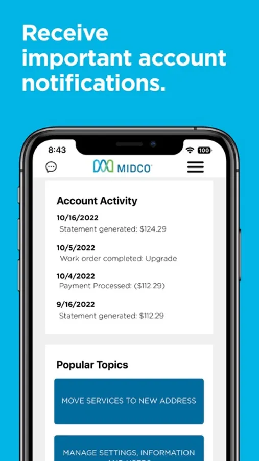 Control your Midco account right from your phone. With the Midco My Account app, you can: