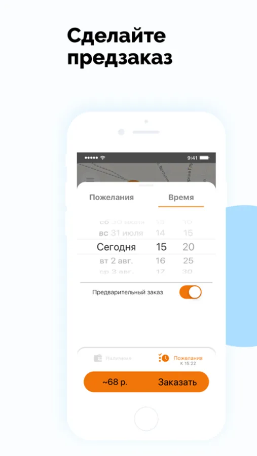 Планируете поездку до аэропорта или на вокзал? Воспользуйтесь функцией предварительного заказа — водитель будет на месте в указанное время.