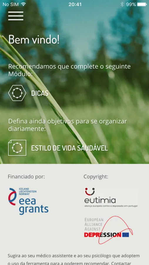 App para a autoajuda na depressão leve a moderada com duas versões, uma para jovens, constituída por 8 módulos e uma versão para adultos constituída por 6 módulos. Ambas as versões têm um componente para apoio na gestão da medicação e um componente de saúde e bem-estar. Para desbloqueio e funcionamento total deve haver uma recomendação do seu médico de família e deve ter o apoio do seu psicólogo.