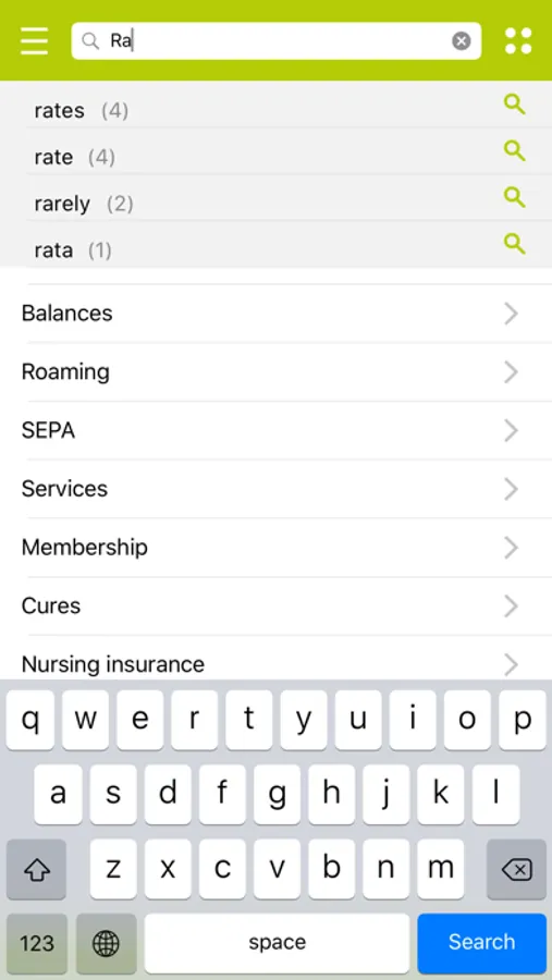 The following features are included in the SABIO-App for iPhone and iPad: