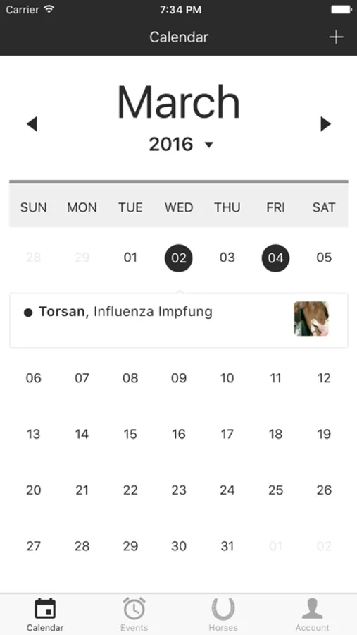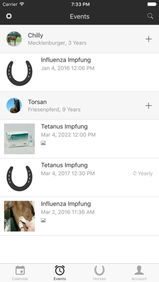 The "Horses" app is easy to use and gives you a quick overview of all regular appointments regarding your horses.