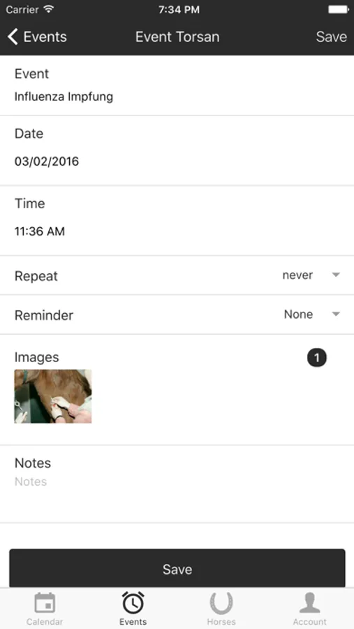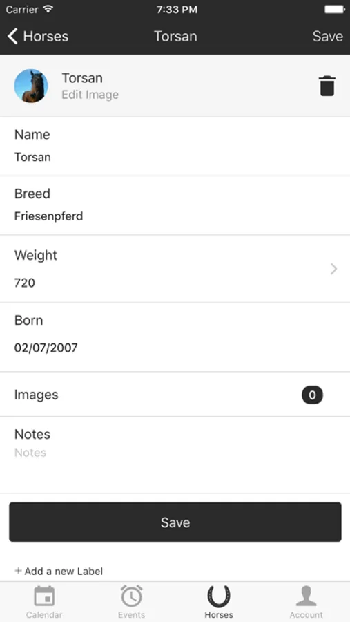Of course you can manage several horses at the same time. Thus, you will never lose track of your pets. A photo can be added quickly and easily.