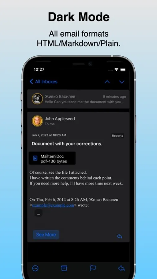 Enjoy exceptional speed and a familiar user interface with Mailtemi. The app uses the latest technology in iOS including C++ and Swift to provide lightning-fast email synchronization. The UI is based on the familiar Mail interface, enhanced with Avatars, Color Coding, and a better Unified Inbox. Mailtemi also features a Dark Mode and Color Coding options, offering a personalized email experience.