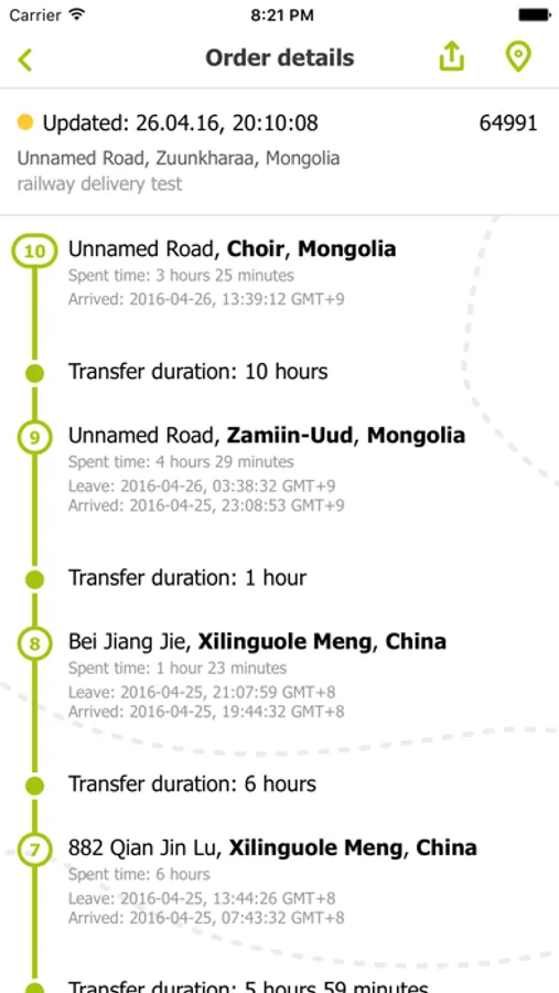 - ability to set up service according to your own criteria - you will receive notification when your cargo crosses the border or arrives in specific city. It will save time for more important tasks at your work;