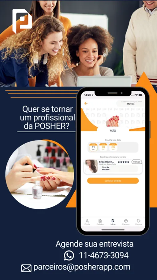 Se você é um profissional que já faz parte da rede POSHER, em caso de dúvidas ou necessidade de suporte entre em contato com o Suporte a Parceiros POSHER: parceiros@posherapp.com