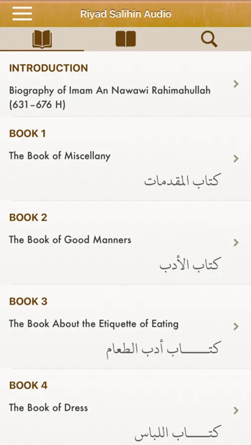 This application gives you the ability to read and listen to the 373 chapters of the book "The Garden of the Righteous - Riyadh As-Salihin " on your Iphone / Ipad / Ipod Touch.