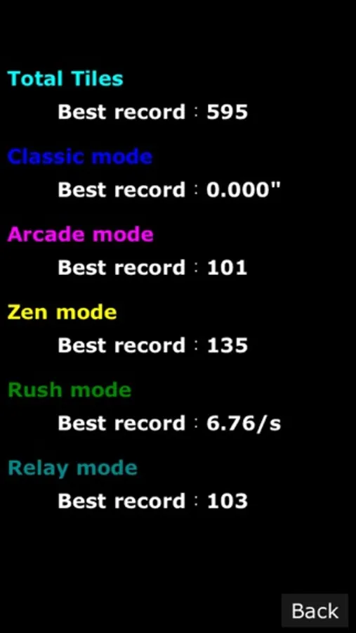 This mode is similar to Arcade mode but tracks the number of tiles you tap per second.