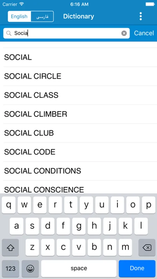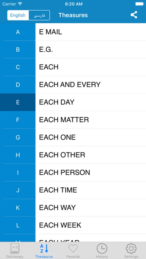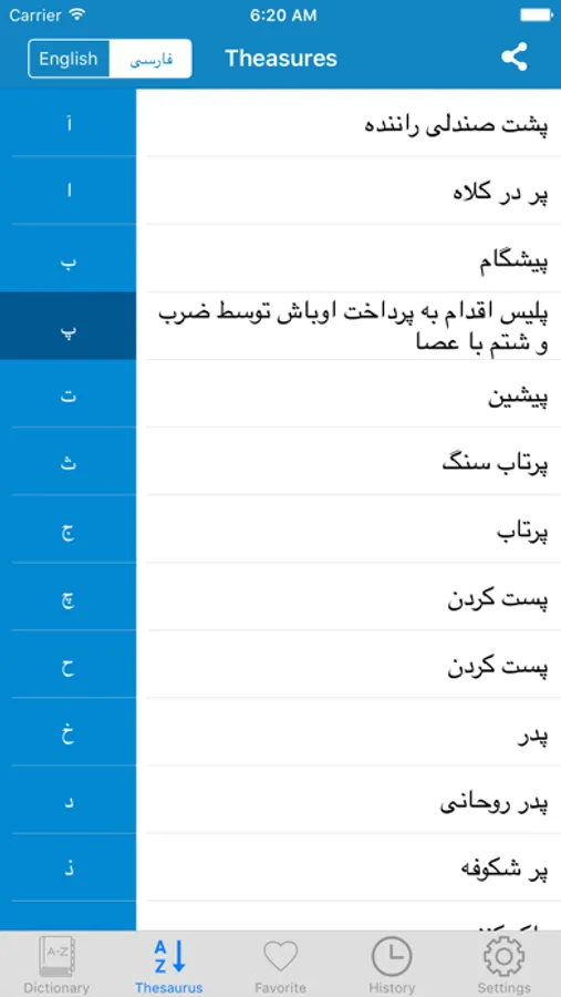 Persian to English – In addition to giving English to Persian meanings the app also allows you to search for Persian words in English. This is especially beneficial for Irani and Persian speaking users who want to find Persian to English meanings of difficult words in this dictionary. Download the app now and find words meanings from a comprehensive farsi dictionary database.