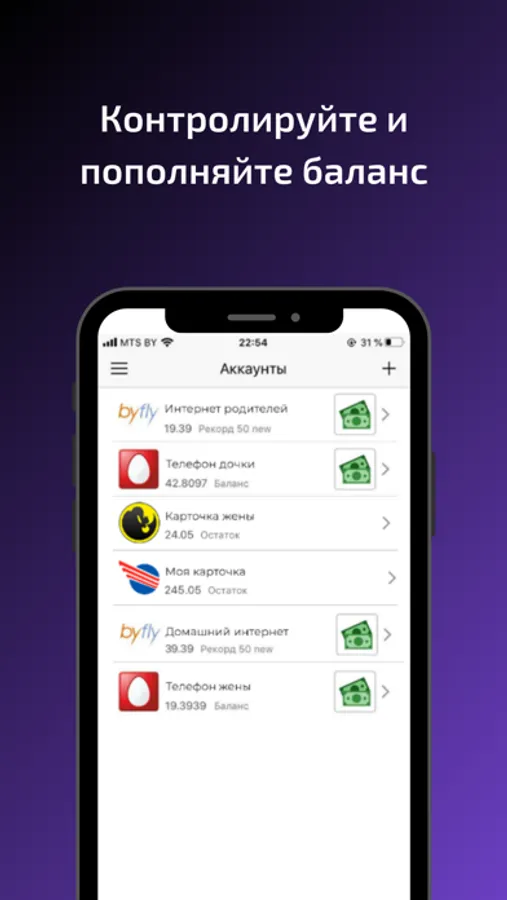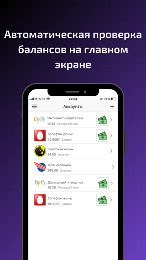 Balanceby - простое и удобное приложение для контроля и мониторинга баланса популярных провайдеров. Приложение позволяет отслеживать актуальные балансы и своевременно пополнить счет.