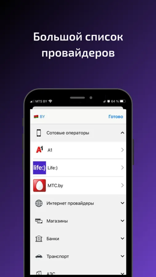 Если ваш оператор, провайдер, банк, любимый сервис не поддерживается напишите нам и мы рассмотрим его добавление.