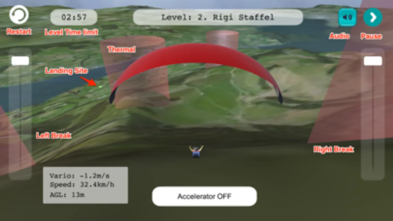Para Glider Game allows you to fly with a paraglider at different flying sites in Switzerland.