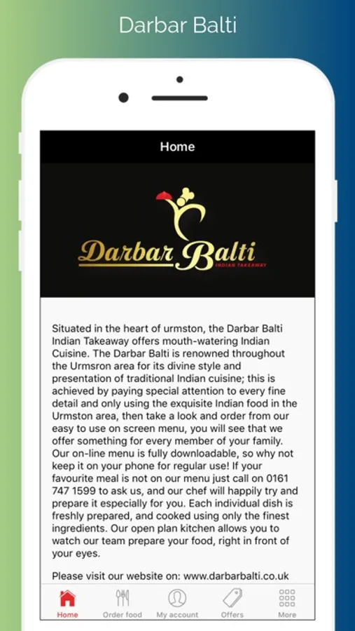 Situated in the heart of urmston, the Darbar Balti Indian Takeaway offers mouth-watering Indian Cuisine. The Darbar Balti is renowned throughout the Urmsron area for its divine style and presentation of traditional Indian cuisine; this is achieved by paying special attention to every fine detail and only using the exquisite Indian food in the Urmston area, then take a look and order from our easy to use on screen menu, you will see that we offer something for every member of your family. Our on-line menu is fully downloadable, so why not keep it on your phone for regular use! If your favourite meal is not on our menu just call on 0161 747 1599 to ask us, and our chef will happily try and prepare it especially for you. Each individual dish is freshly prepared, and cooked using only the finest ingredients. Our open plan kitchen allows you to watch our team prepare your food, right in front of your eyes.