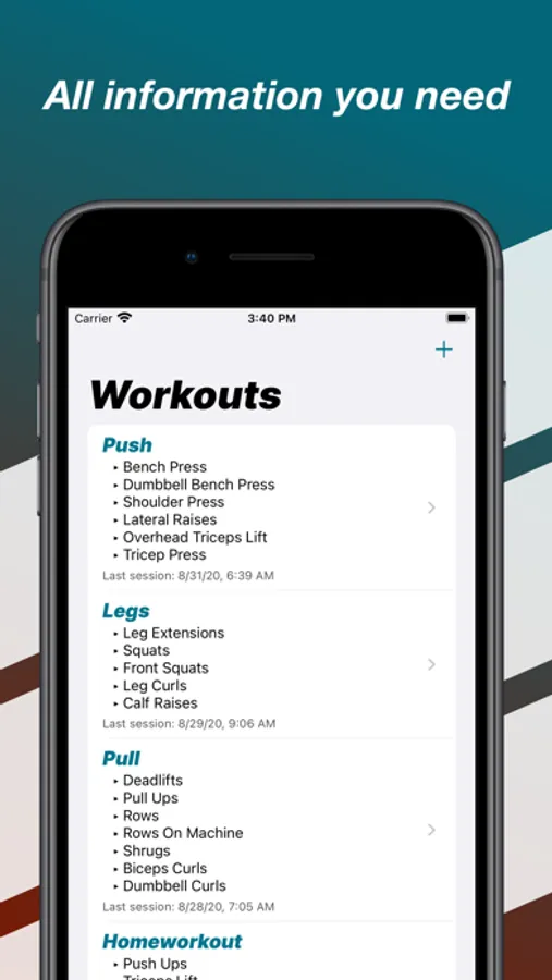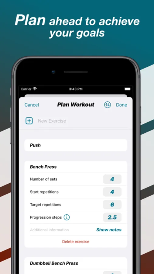 Automatic weight increases: Progression will automatically increase the weight and decrease the reps for each exercise set after you've reached your maximum repetitions, helping you break through plateaus and make steady progress.