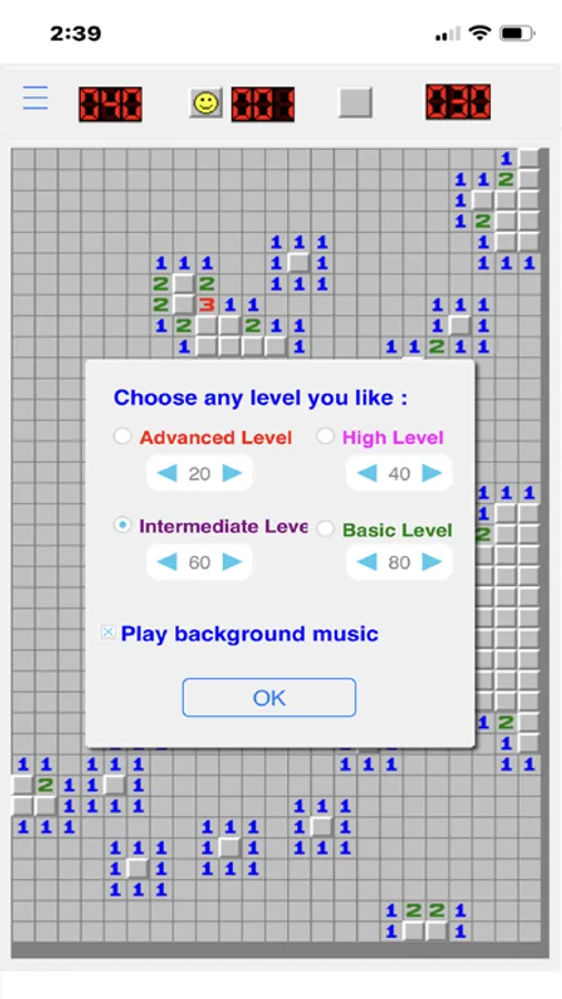 Unlimited Minesweeper games and different difficulty level setting.