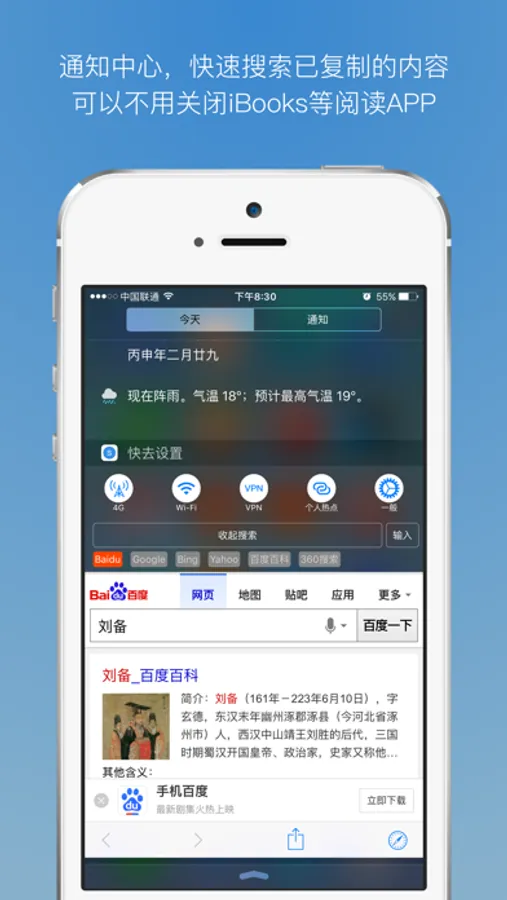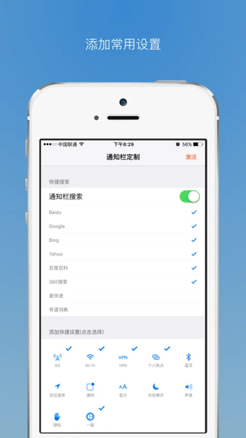 快去设置,针对苹果用户精心打造的一款快捷启动APP,可以帮助您快速打开各种设置。并且可以帮助您在不影响当前阅读的情况下,在通知中心内完成复制内容的搜索。