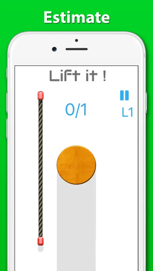 ◉ Touch and hold to make the rope longer and match the perimeter of wood log in different shapes.