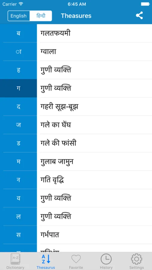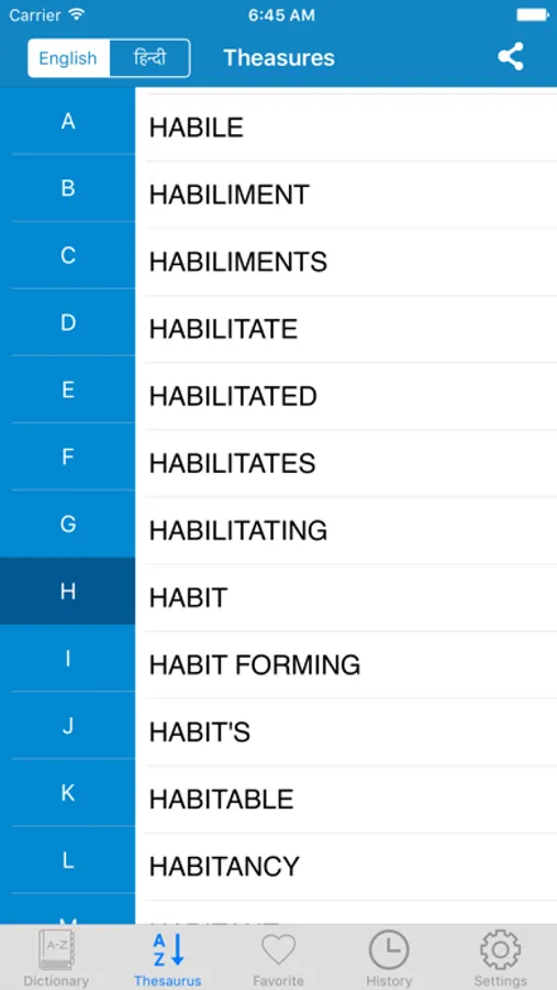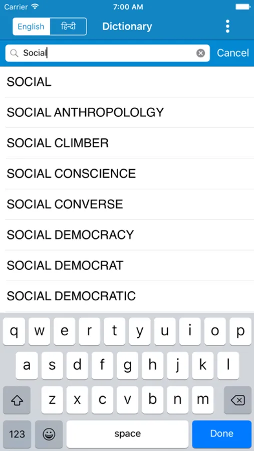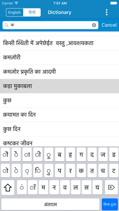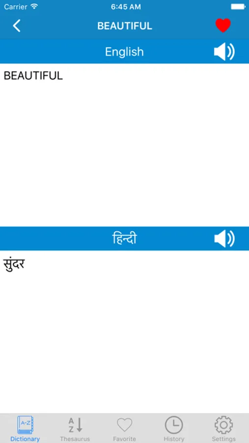 This dictionary app allows you to search for hindi words in English as well as English words in hindi. In this app there is the simple hindi to English dictionary feature which allows you to search for English meanings of hindi words. Similarly, the app contains the feature where you can find hindi meanings of English words. All you have to do is to select your respective input method and you can find meaning of the word. Download the hindi dictionary app now and find meanings of English to hindi words as well as hindi to English words meanings.