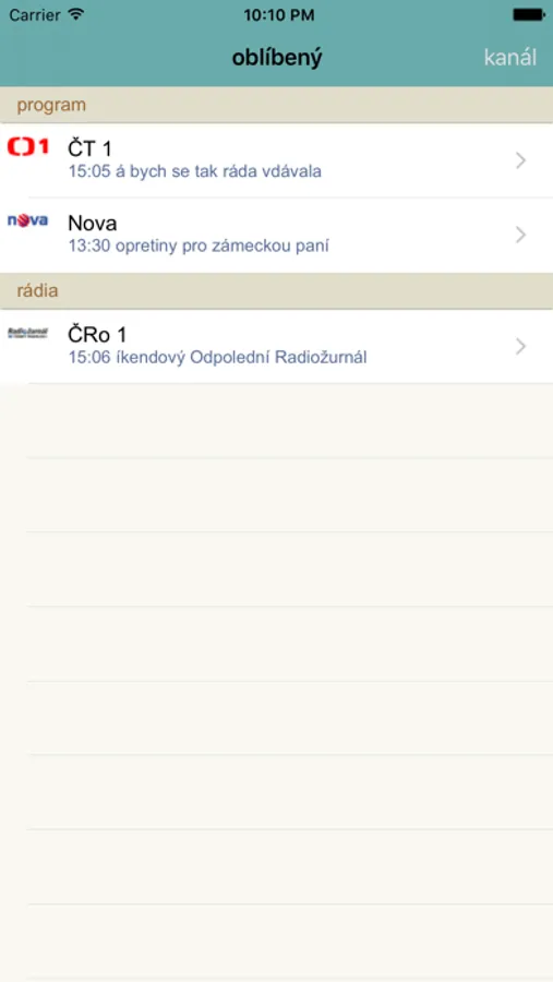 Oblíbené kanály mohou být uloženy pro rychlý přístup kdykoliv.