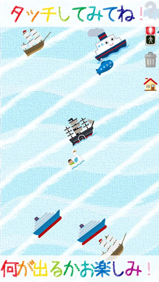タッチして線路や道路を描いた分だけお子さまが成長すると思います。