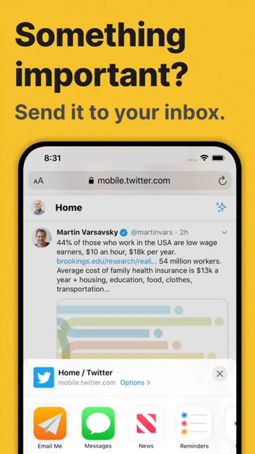 “If you need to send photos or screenshots to yourself on a regular basis then Email Me will save you quite a bit of time” - Productivity Blog