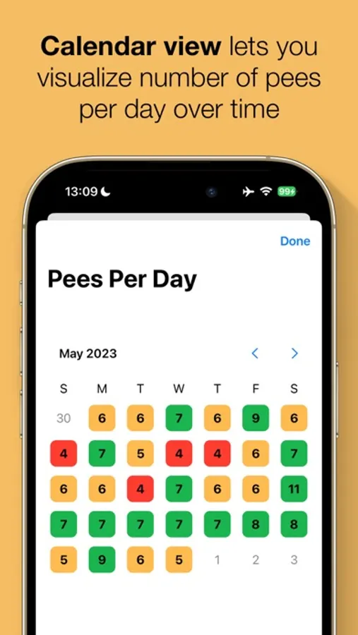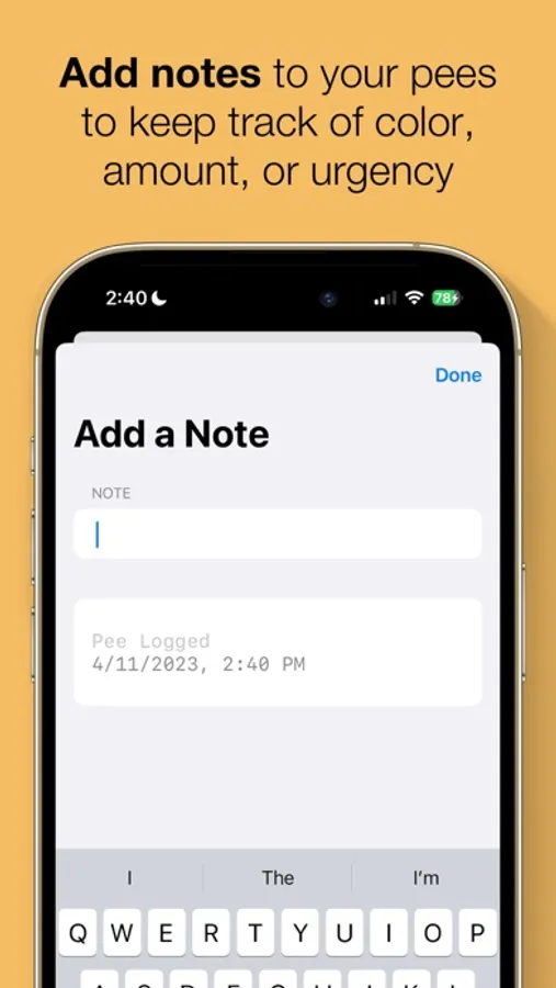 You can also use Pee & See as a simple pee tracker, and export your data as a CSV. You can even add notes to each pee to keep track of urgency, color, amount, or whatever you'd like.
