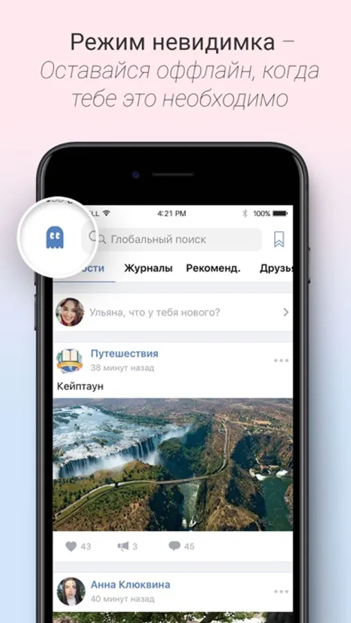 Чем наше приложение отличается от конкурентов? Контакт не глючит и не зависает, в нем есть все, чтобы удобно серфить в ВК, обмениваться сообщениями и так далее.
