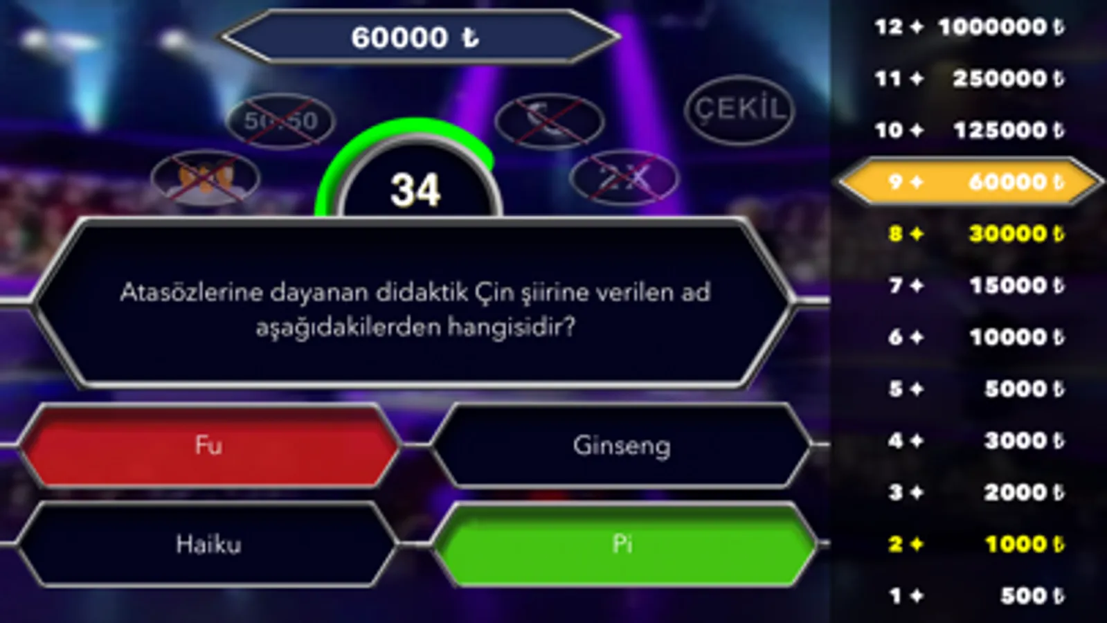 - 4 Adet Joker (Seyirciye Sor, Telefon Jokeri, %50 Jokeri, Çift Cevap Jokeri)