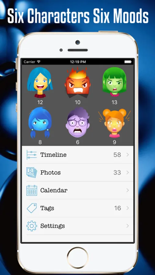 - Six Characters Six Moods. Joy,Anger,Sadness,Disgust,Fear and Surprise.