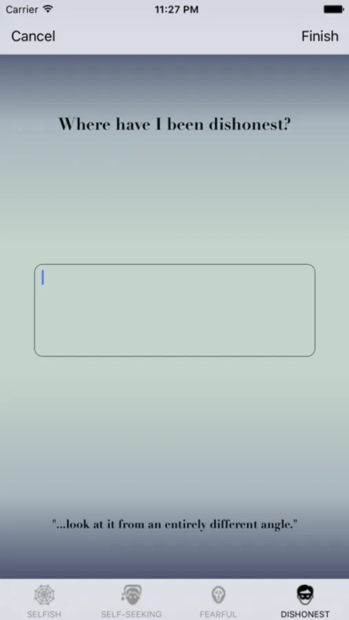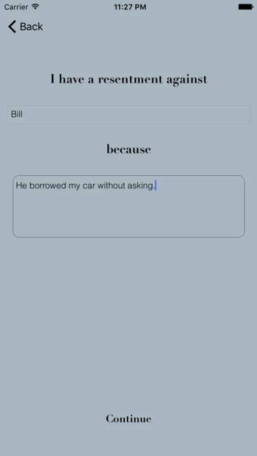 RSNTMNT offers a quick and subtle interface for working through tough times and tricky feelings from anywhere. It walks you through a full resentment loop, much like the 4th step of a 12-step program, and enables emailing your compiled thoughts to yourself or a sponsor.