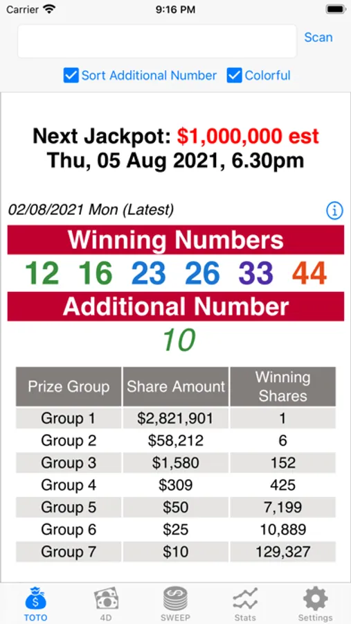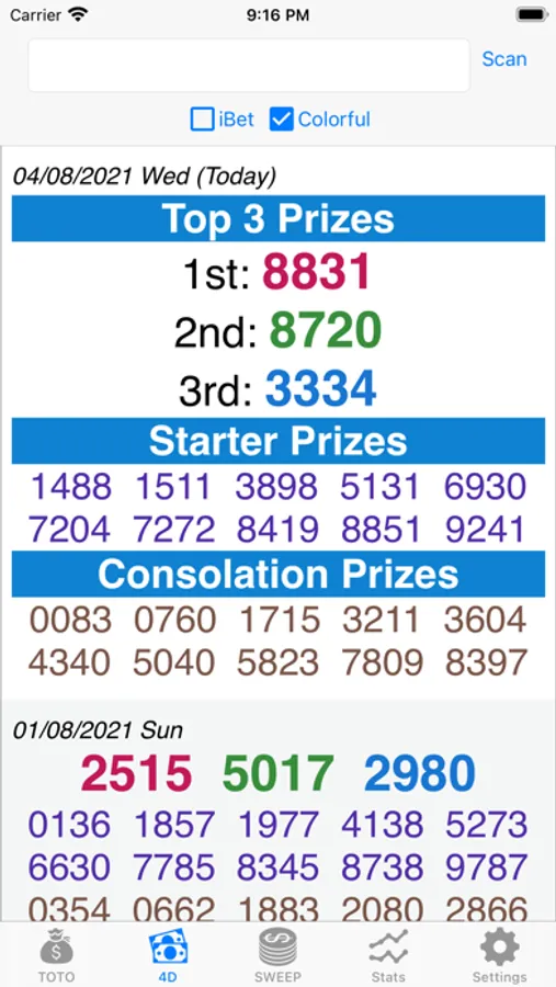 This app will help you to Scan the SINGAPORE TOTO 4D numbers and Check the last 10 years results (Including new TOTO 6/49 rule and 4D iBet). Never worry about losing money by mistake again!!!