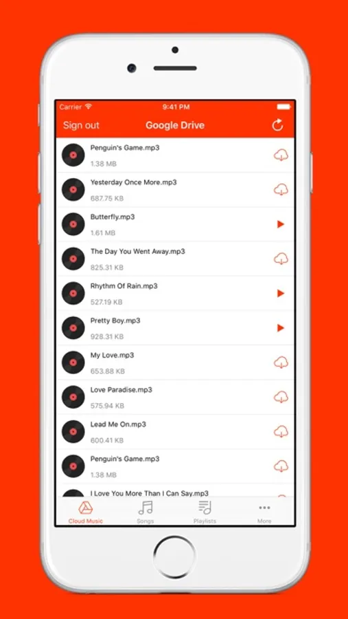 3. Get songs from your cloud storage. (You should upload your preferred songs to your cloud storage by yourself.)