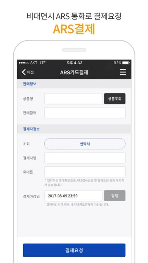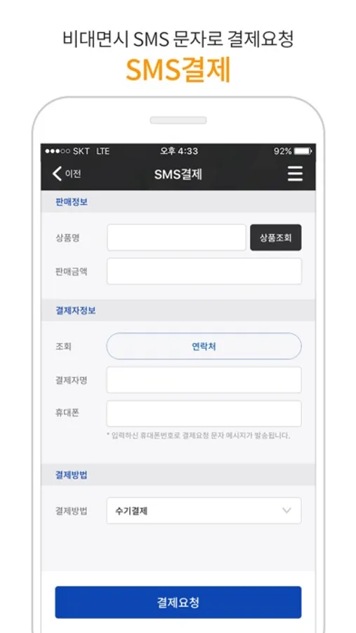 - 고객에게 가상 전화번호가 담긴 SMS를 전송해 결제 진행.