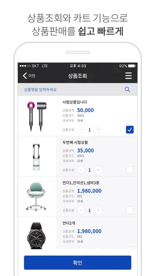 - 어플리케이션 내 상품리스트를 등록하여 조회 가능.