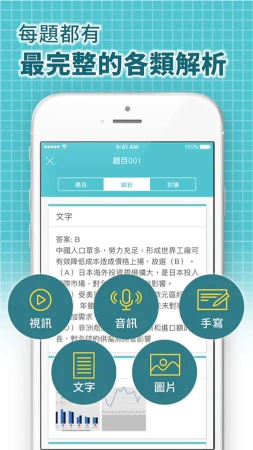 ・ 最完整的家教解析:考尚樂的每個題組均有專業教師、超強學長姐親自錄製各種解題說明,包括:手寫教學、錄音說明、影片指導等,讓你一看就會!
