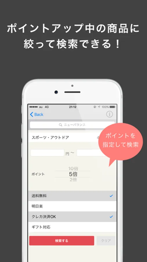 「検索結果が多すぎるから、ポイントアップ中の商品に絞って検索したい」
