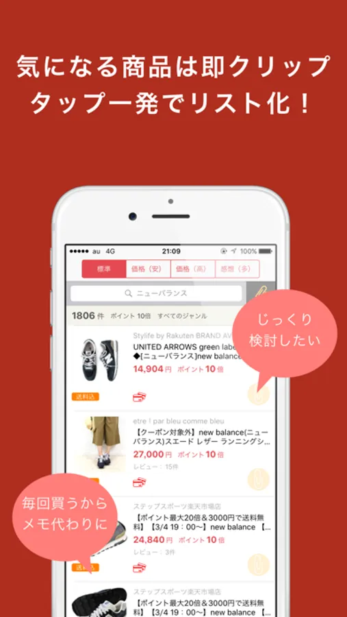 タップ一発で気になる商品を保存できます。後でじっくり検討したい時や定期的にお買い物したい商品のリスト化に役立ちます。